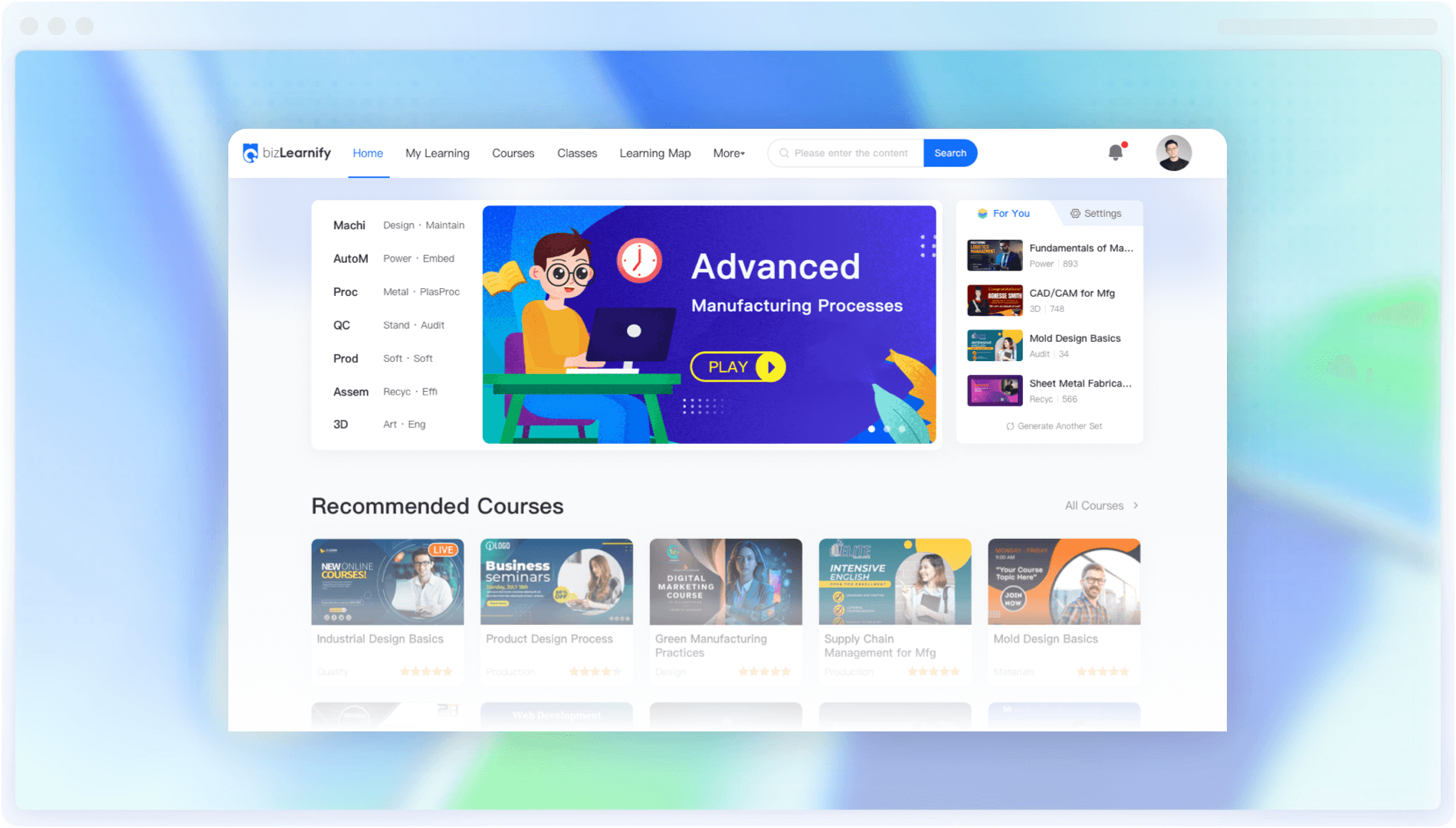 Online courses, live training, face-to-face sessions, and punch-in learning.